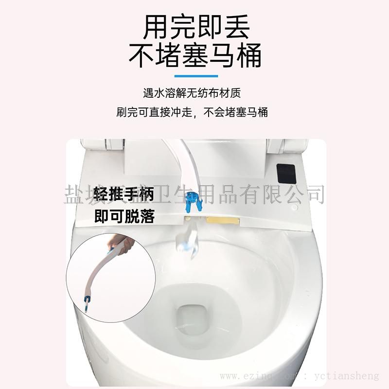 一次性可冲散马桶刷,刷头采用可冲散无纺布,遇水...